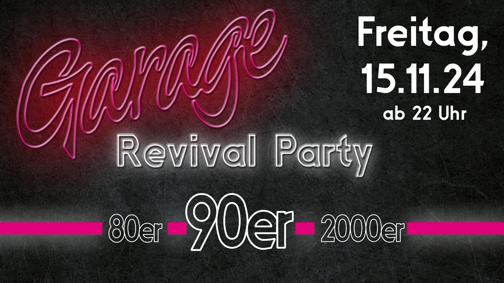 Das Garage Revival-Event verspricht eine legendäre Partynacht mit neuen Gesichtern und alten Bekannten. Feiert euch und die vergangenen Jahre in der alten Garage – der heutige Freiraum.