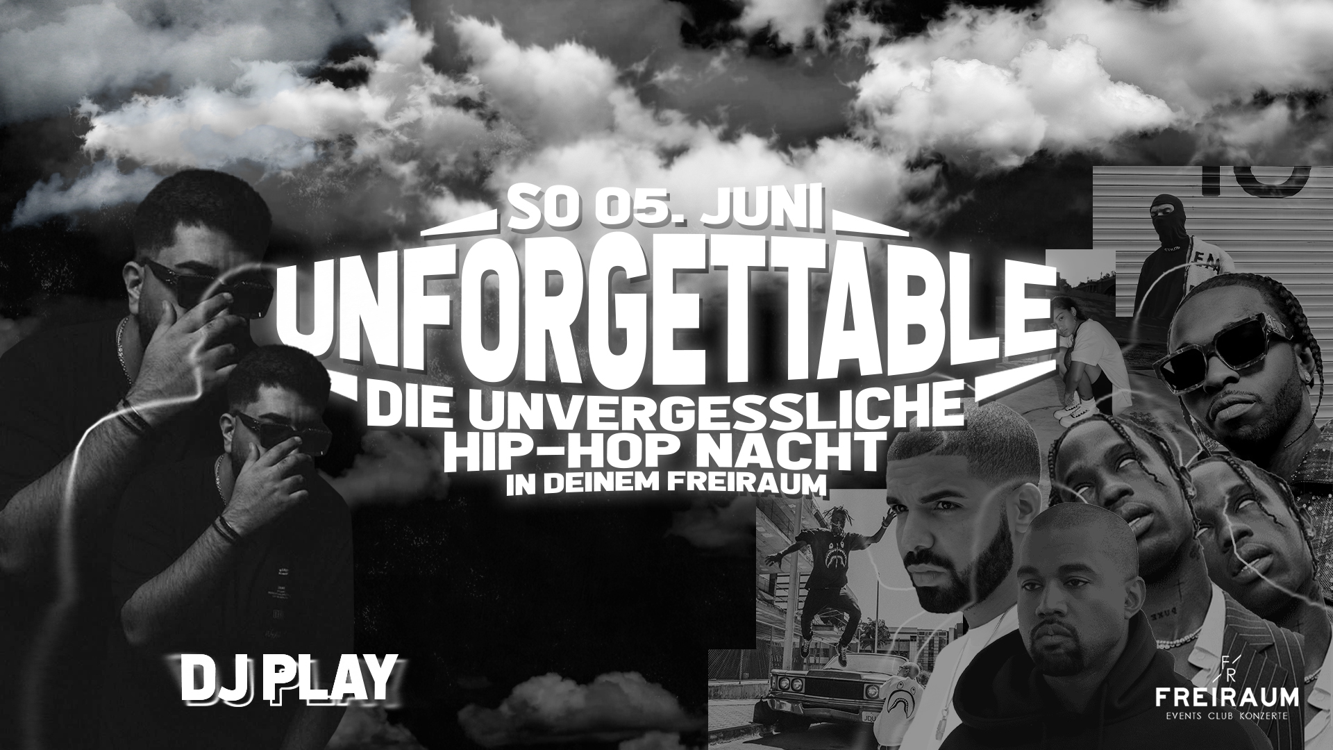 Unser DJ Play wird in seiner Plattensammlung graben und euch den ganzen Abend mit Klassikern von Tupac, Biggie, Eminem, Dr. Dre, Nelly, Snoop Dogg, N.W.A, 50 Cent, LL Cool J, Run DMC und vielen mehr verwöhnen. It’s gonna be legendary!!!